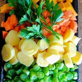 Este saboroso 'Mix Maionese 1kg' da categoria 'Picadinhos' é uma combinação irresistível de vagem, cenoura e batata, todas cuidadosamente selecionadas, picadas em pedaços perfeitos e misturadas em uma generosa porção de 1kg. Este prato é ricamente coberto com uma maionese cremosa e suave, garantindo um sabor harmonioso e deliciosamente equilibrado. É uma opção incrível para quem aprecia sabores caseiros e uma alimentação colorida e nutritiva. Perfeito para compartilhar com a família e amigos em qualquer ocasião. 1k batat, 5009g cenoura, 250g vagem