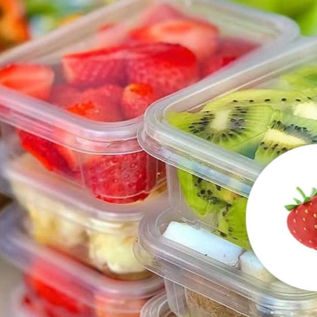 10 potinhos 110g cada de frutas picadas e higienizadas morango, kiwi, abacaxi, manga, laranja, banana, goiaba, melao, mamao, uva.