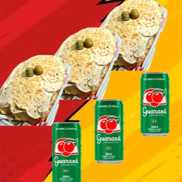 Desfrute de três saborosos Hot Dogs Tradicionais Completos, meticulosamente montados na bandeja. Cada hot dog é recheado com duas salsichas suculentas, regadas com ketchup e mostarda de primeira qualidade. Acompanhados ainda por milho, batata palha crocante e um cremoso purê de batata, que oferece uma textura inigualável. Para tornar sua experiência ainda mais deliciosa, adicionamos uma irresistível maionese temperada e a inconfundível farofa de alho frito. A finalização fica por conta da azeitona temperada, que traz um toque especial ao prato. Com todos esses ingredientes, cada Hot Dog pesará aproximadamente 600g. Acompanha ainda um refrescante Guaraná Antarctica, para complementar sua refeição. Um combo perfeito para toda a família!