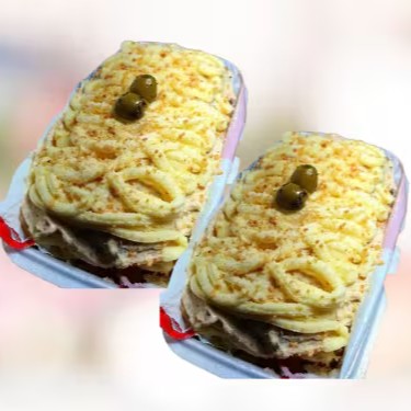 Dog montado na bandeja, salsicha , ketchup e mostarda, milho, batata palha, purê de Batata cremoso, deliciosa maionese temperada, Farofa de alho frito finalizando com azeitona temperada *