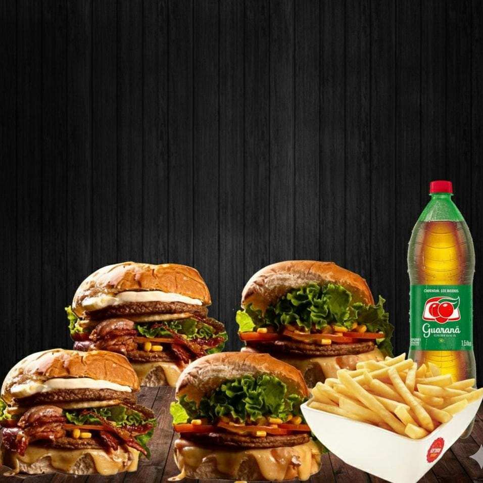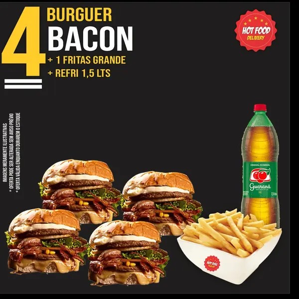 4 burguer bacon + fritas grande + 1 antarctica de 1,5l