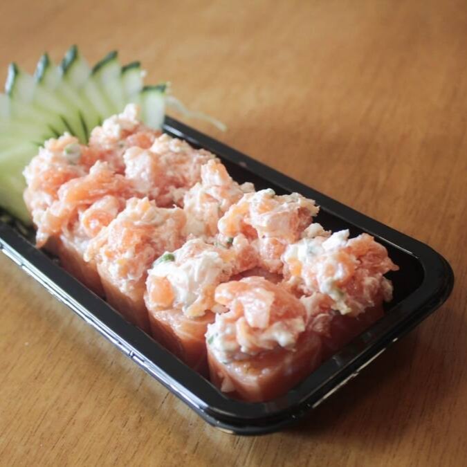 Sushi recheado com salmão e creme chesse