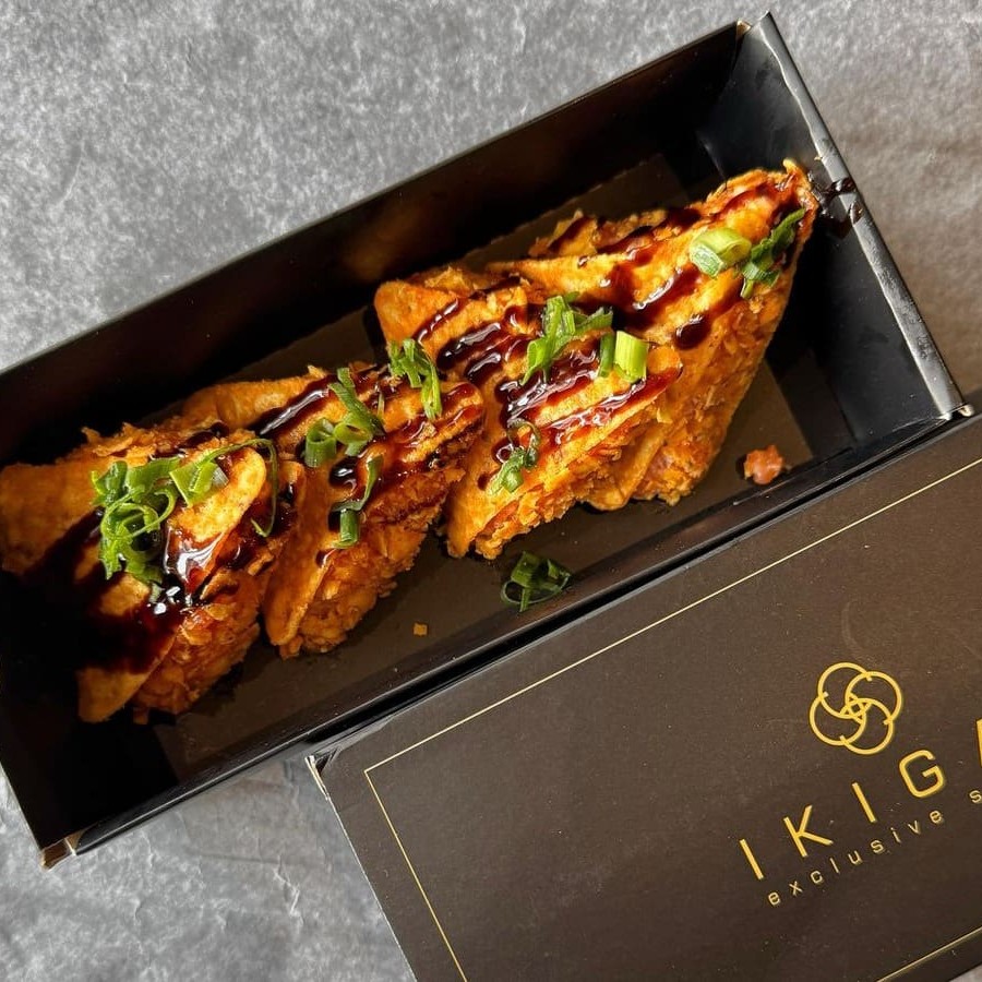 Bolinho Super crocante com recheio de salmão e cream cheese,exclusivo do Ikigai!