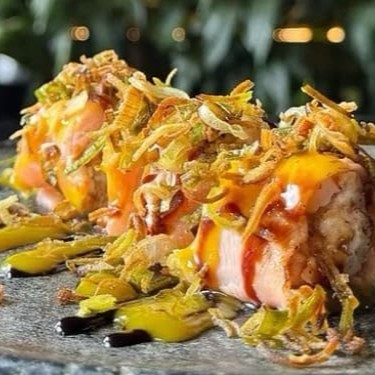 Sa-Boor Coxinha ! Formato de Coxinha, mas sem massa de batata, empanada na panko, recehada com camarão, salmão e cream cheese !! Com tempero especial Ikigai, finalizada com molho tarê !