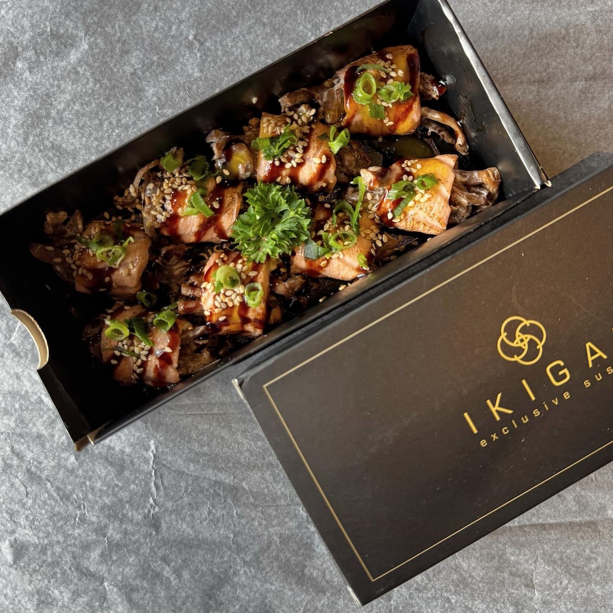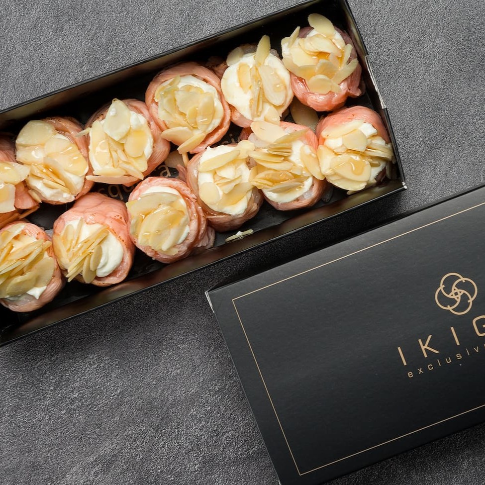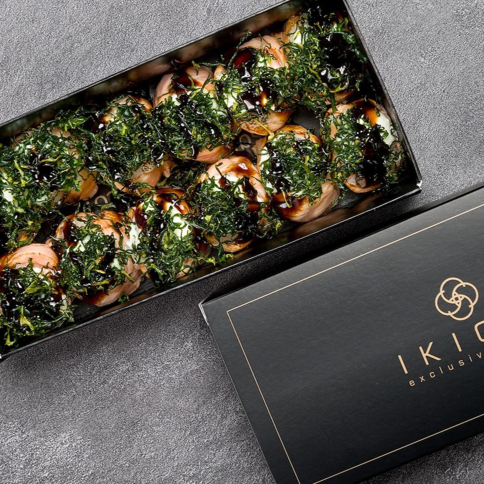 Salmão Maçaricado com Camarão e Cream Cheese Finalizado com Azeite Trufado - 8 Unidades