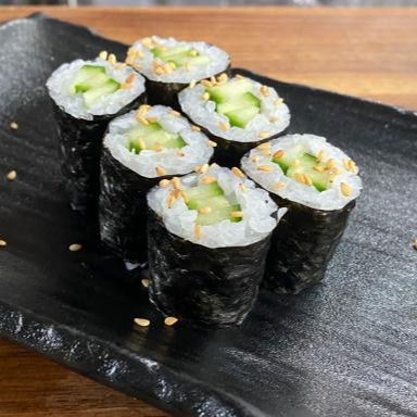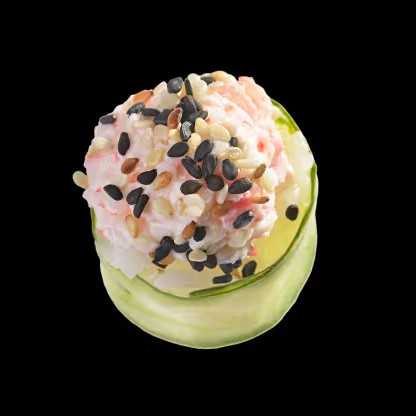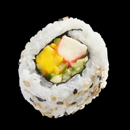 Manga, pepino, kani,arroz, cream cheese, cebolinha e gergelim.