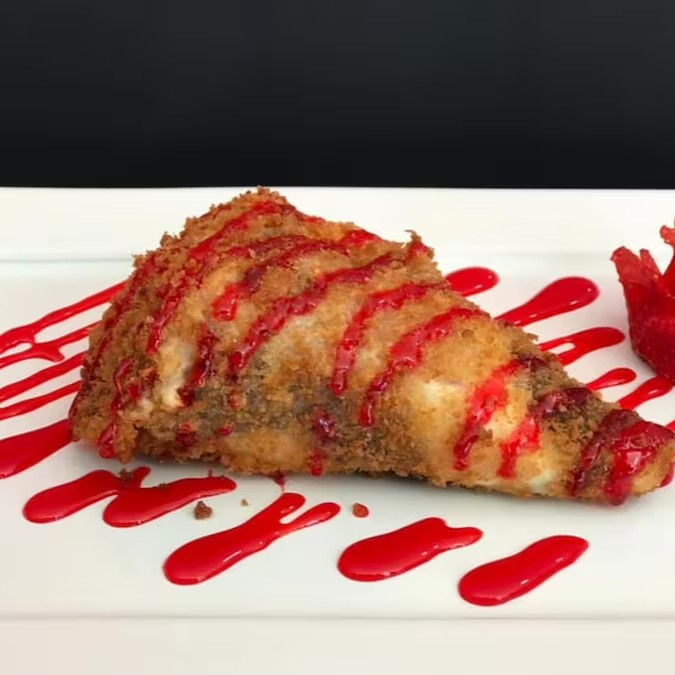 Um delicioso temaki doce feito com massa de harumaki,recheada com cream cheese e chocolate,empanado e frito
