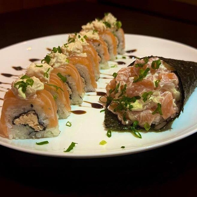 10 hot com cream cheese 8 harumaki de salmao e dois temakis p de salmão grelhado e hot