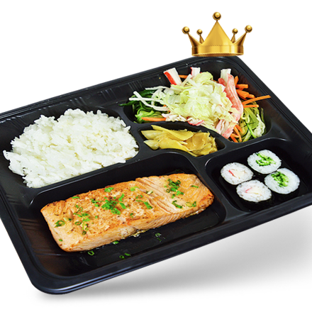 Delicioso Obento De Frango Grelhado,Acompanhado De Harumaki De Queijo,Gohan E Legumes Na Manteiga