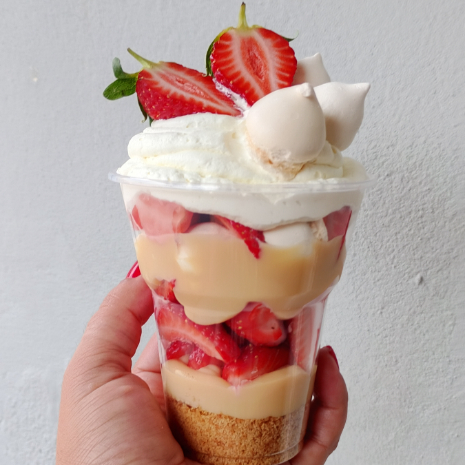 Camadas irresistíveis de biscoito crocante, brigadeiro branco super cremoso, pedaços generosos de morango fresco, suspiros delicados e o toque final com chantilly. Uma explosão de texturas e sabores que vai te conquistar na primeira colherada! 😍🥄 Um doce ousado, vibrante e apaixonante — digno de uma diva pop! 🎶🍓