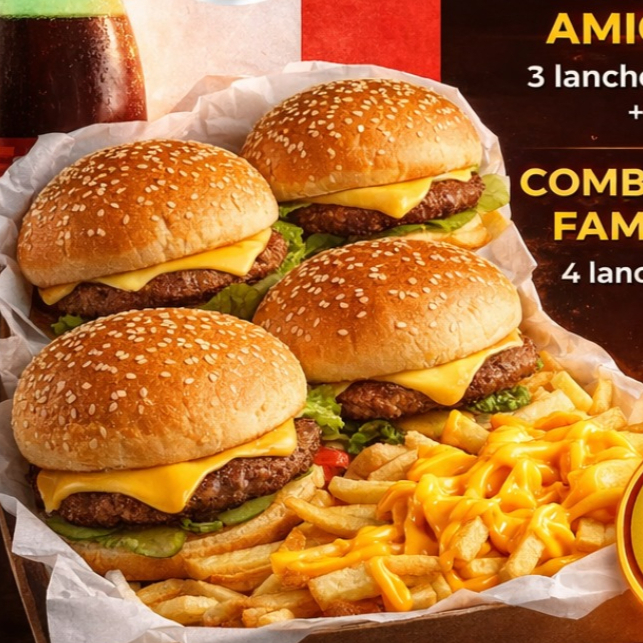 Combo Familia 4 Lanches + Fritas + Refrigerante