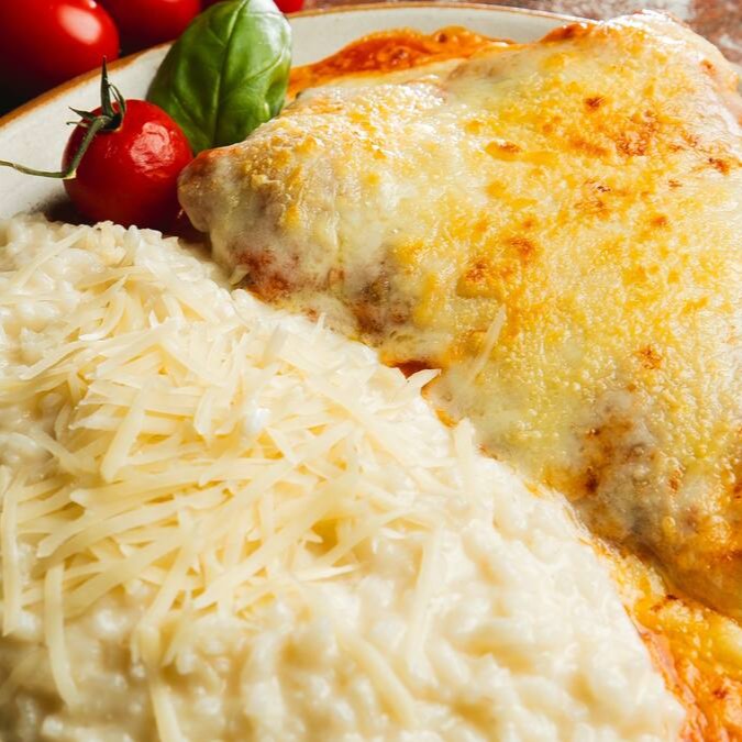 Acompanha, spaghetti ao sugo ou risotto de grana padano