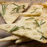 Massa crocante de pizza, temperada com sal grosso e alecrim e assada no forno a lenha