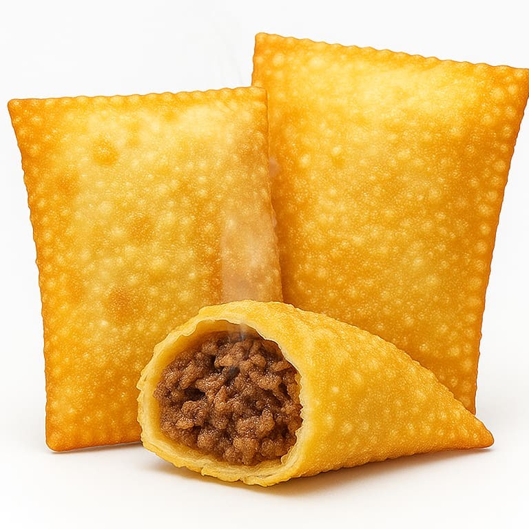 O clássico que nunca sai de moda! Nosso pastel de carne é feito com massa fininha e crocante, frita na hora, e recheada com carne moída suculenta e temperada com alho, cebola e especiarias caseiras. Cada mordida entrega aquele sabor autêntico de pastel de feira, dourado, sequinho e irresistível. Ideal pra quem ama sabor de verdade e textura crocante até o fim.