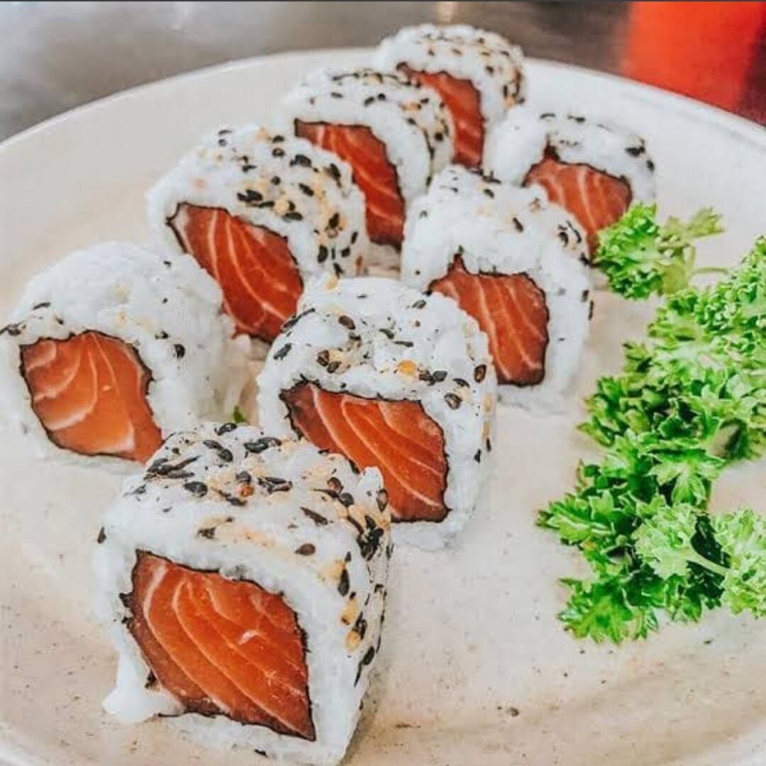 30 unidades de hot holl de salmão. Obs. Não acompanha molhos e Hashi