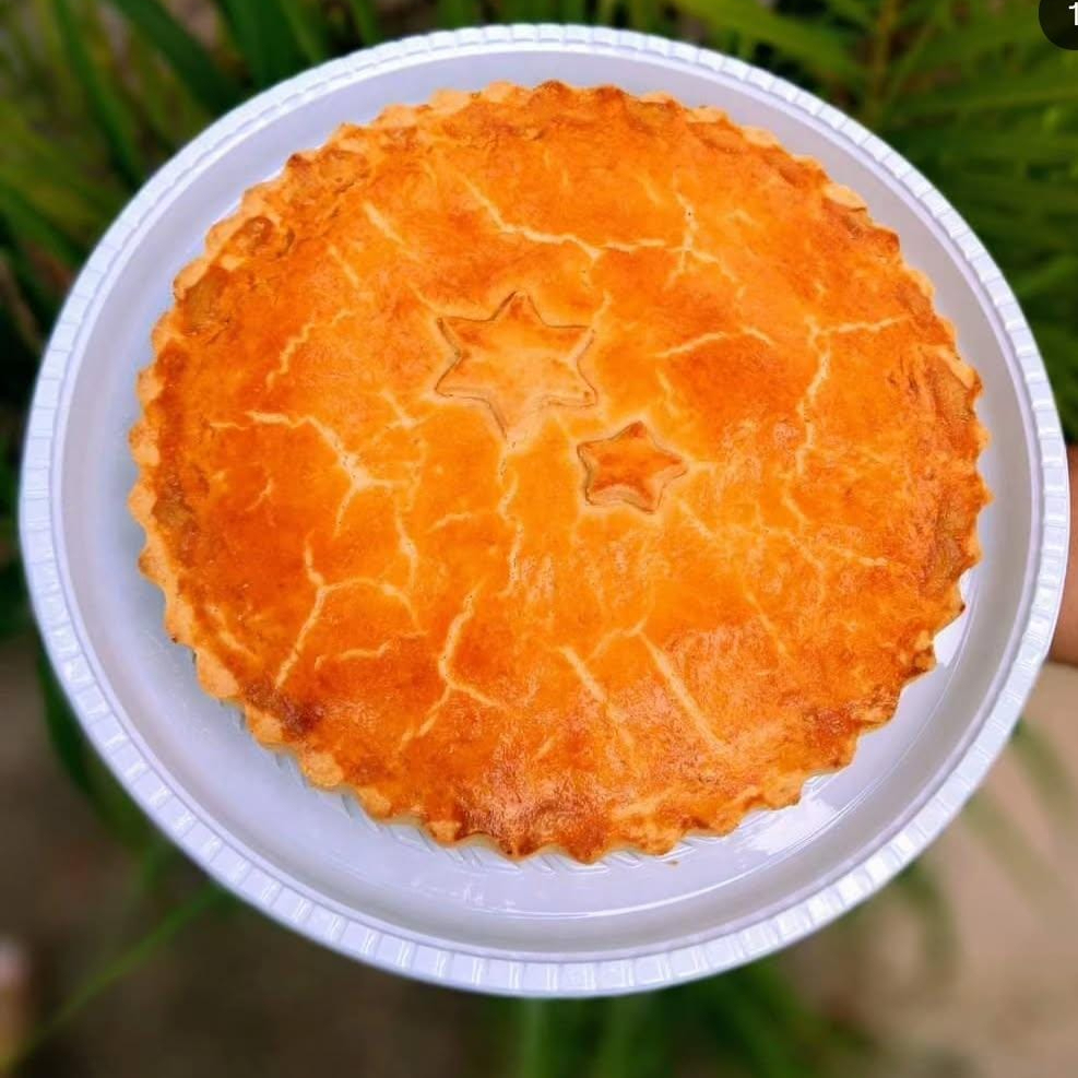 Empadão de Frango Cremoso com Catupiry, super recheado pesando cerca de 1.200kg! Serve até 4 a 6 pessoas dependendo do tamanho da fatia cortada