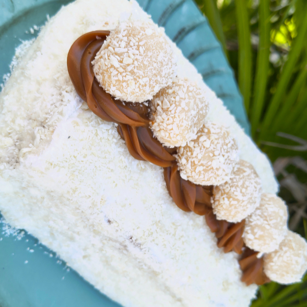 Deliciosa massa branca com recheio de doce de leite, ameixa e creme de coco.