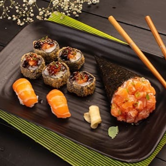 2 niguiris salmão, 5 hots especiais e 1 temaki salmão (este combinado não pode ter sua composição alterada).