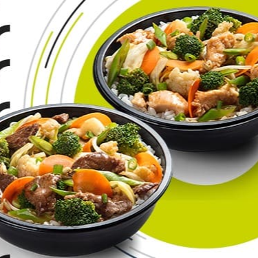 Macarrão, carne bovina, brócolis, couve flor e molho à base de shoyu.
