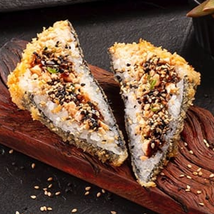 Enrolado crocante de salmão, cream cheese, kani, cebolinha e molho tarê. Hot Especial com 5 unidades.
