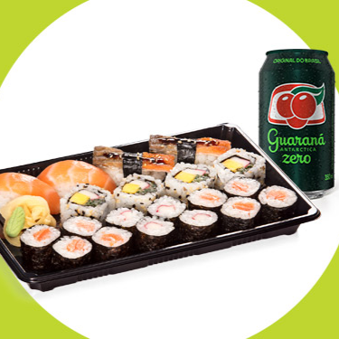 2 niguiri salmão, 2 niguiri skin, 4 uramaki califórnia, 8 sakemaki e 4 kanimaki. Este combinado não pode ter sua composição alterada. Acompanha 1 refrigerante Lata 350 Ml.