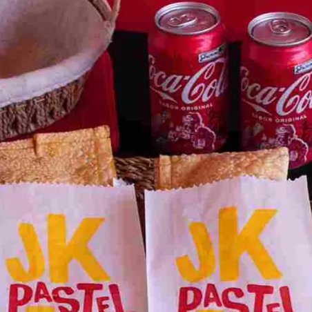 Escolha dois pastéis crocantes de 20cm e leve dois refrigerantes gelados. Uma delícia para compartilhar ou saborear sozinho!
