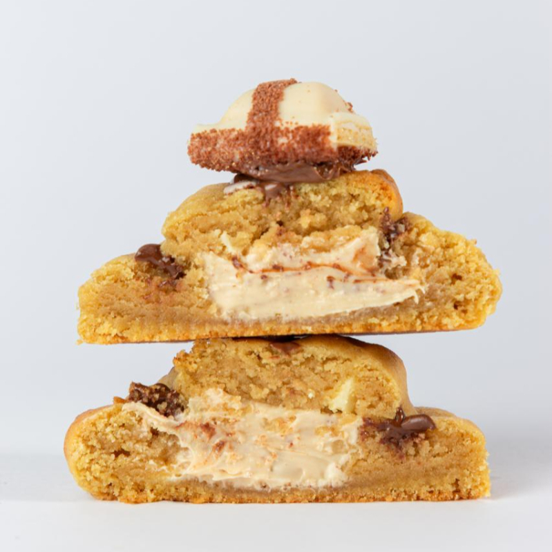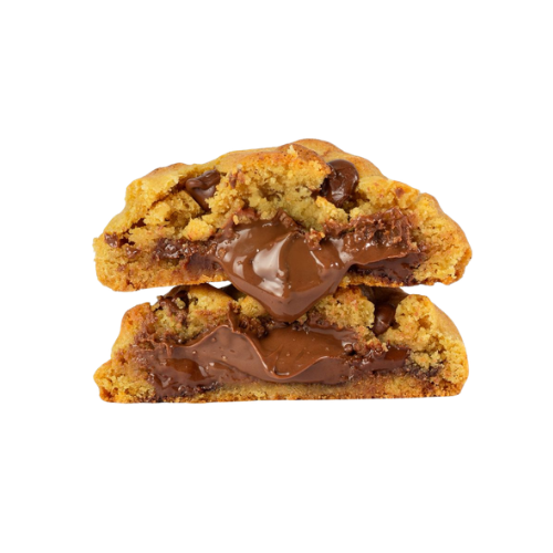 Um clássico: crocante por fora, macio por dentro, com pedaços generosos de chocolate meio amargo e um recheio cremoso de Nutella de verdade.