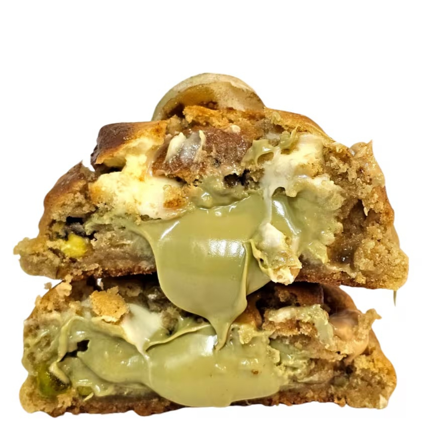Uma experiência de sabor inesquecível: massa tradicional, com chocolate branco e grãos de pistache, recheio de ganhache de pistache, finalizado com gotas Golden Chocolate