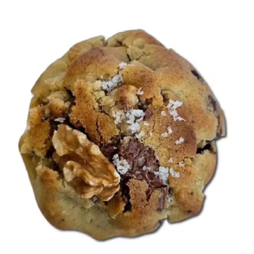 Massa estilo americana, crocante por fora e macia por dentro, com nozes, chocolate ao leite e amargo, finalizada com flor de sal. Irresistível em cada mordida
