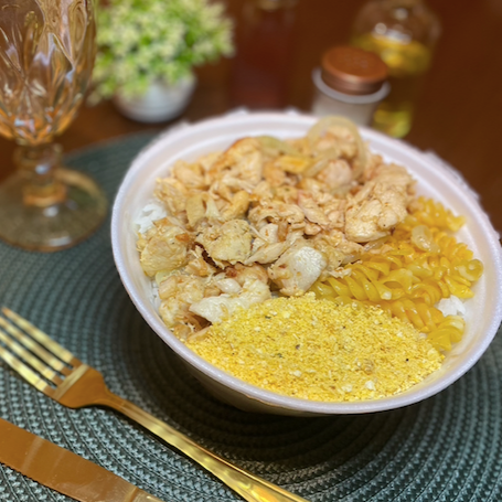 Desfrute do nosso Strogonoff de Frango (P), uma marmita de tamanho P repleta de sabor e qualidade. A combinação perfeita de um arroz soltinho e fresco, acompanhado do clássico Strogonoff de frango, cremoso e bem temperado. Para realçar ainda mais o sabor, incluímos a crocante batata palha e o irresistível macarrão ao alho e óleo, que traz um toque a mais de requinte ao prato. Uma experiência gastr