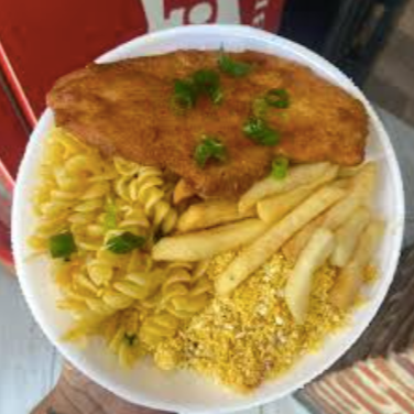 Saboroso Filé de Frango à Milanesa, crocante por fora e suculento por dentro, acompanhado de um arroz branco soltinho, feijão fresquinho, macarrão alho e óleo que traz um toque de alho dourado na medida certa. A farofa deliciosamente crocante e as batatas fritas, douradas e crocantes, complementam essa marmita tamanho P, transformando-a numa refeição rica em sabores e texturas. Uma opção perfeita