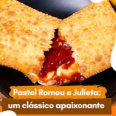 Nossa versão do clássico 'Romeu e Julieta' é apresentada em forma de pastel, uma combinação verdadeiramente apaixonante. Este pastel, recheado generosamente com queijo mussarela de primeira qualidade, derrete na boca, enquanto a goiabada, com seu doce perfil frutado, traz a dose certa de doçura. Juntos, eles criam uma explosão de sabor inigualável. Uma experiência gastronômica que une o melhor do doce e do salgado em perfeita harmonia. Ideal para quem aprecia a combinação de sabores brasileiros em um único prato.