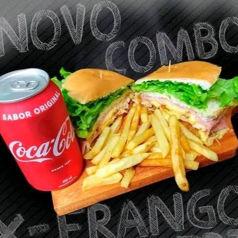 Pão de hambúrguer, filé de frango, queijo, presunto, tomate, alface+ coca 350 ml + batata frita P