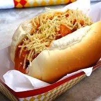 Pão de hot dog, salsicha , molho de tomate, maionese, catchup, mostarda, vinagrete, purê de batata e batata palha