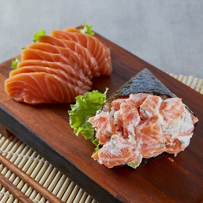 Neste combo, delicie-se com 1 temaki de salmão cream cheese e cebolinha + 1 temaki de salmão grelhado com cream e cebolinha