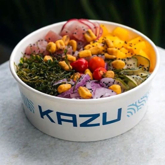 Poke especial com 50g de salmão fresco, 50g de kani, acompanhado de sunomono com manga, tomate cereja e cebola roxa, trazendo frescor, leveza e equilíbrio de sabores.
