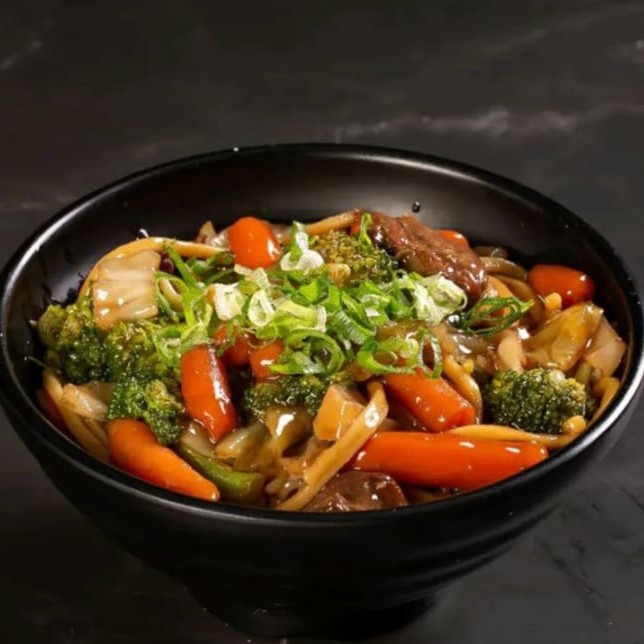 Yakissoba especial com macarrão, legumes crocantes e proteína.