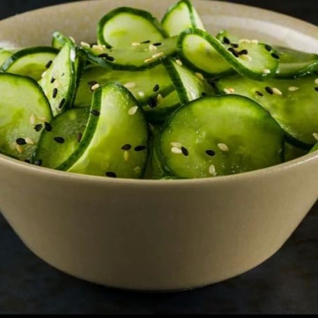Salada fresca de pepino agridoce , leve e refrescante.