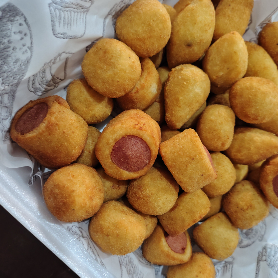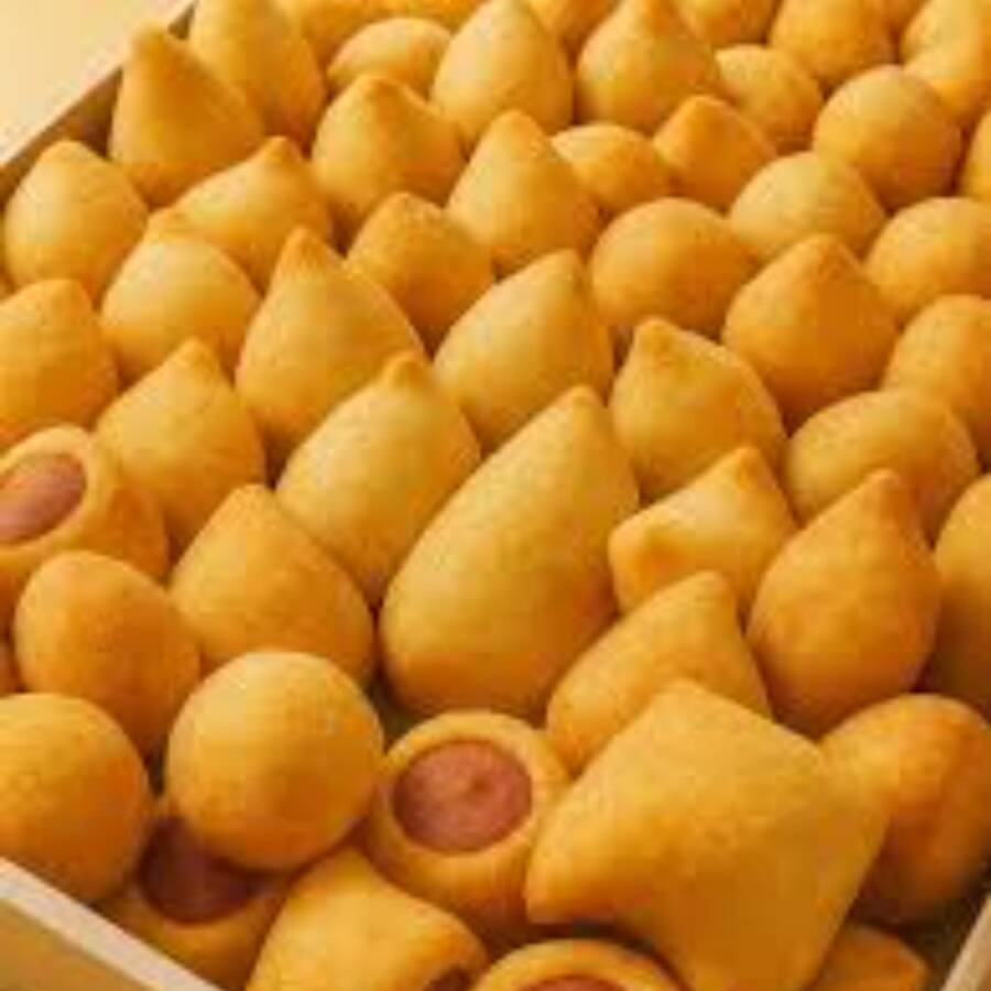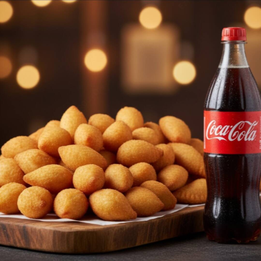 São 100 salgados 25 mini pastéis 1 coca cola 2 litros