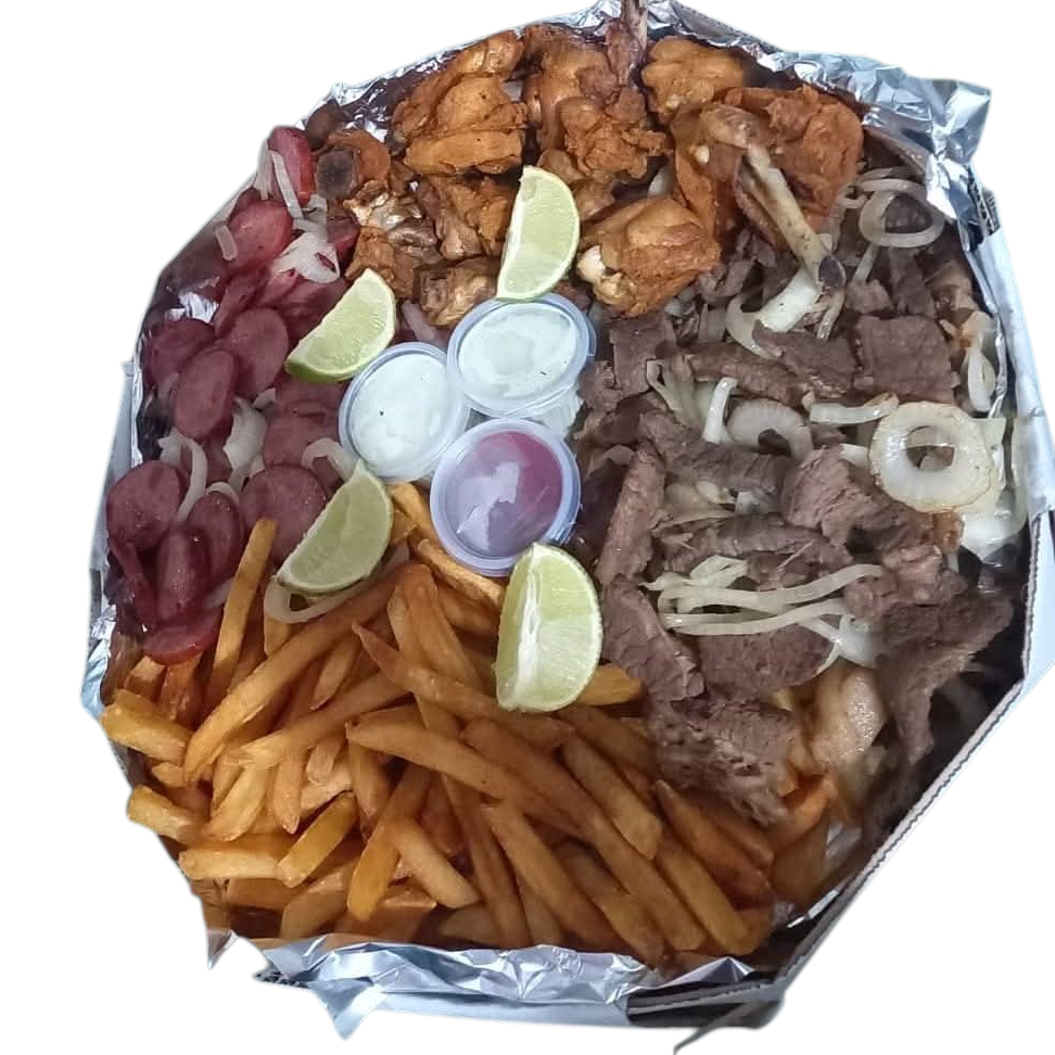 Contrafilé Acebolado + Frango Frito + Batata Frita + Calabresa Acebolada + Refrigerante 2 Litros