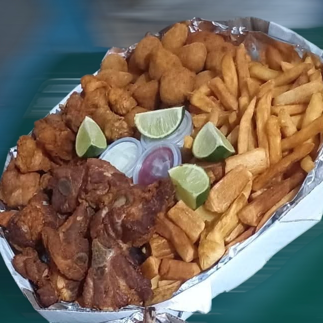 25 Salgados Fritos + Costelinha De Porco + Batata Frita + Mandioca + Refrigerante 2 Litros