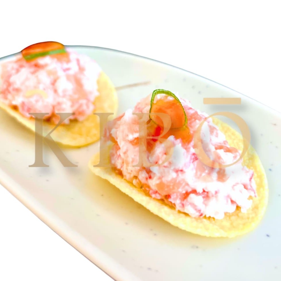 Pringles com salmão e cream cheese, geléia de pimenta e tarê. (8 unidades)