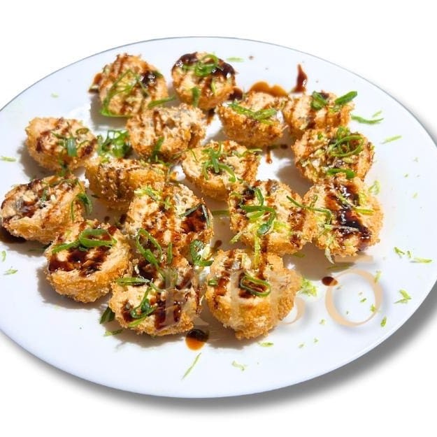 Enrolado empanado e frito. Feito com alga, arroz, camarão e cream cheese. (10 unidades)