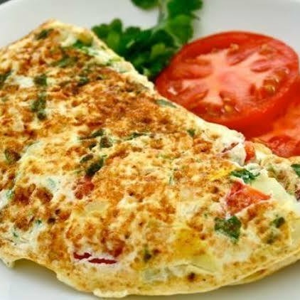 Omelete generoso recheado c/mussarela e tomate picado.