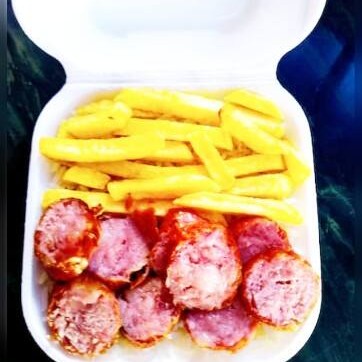 A linguiça é frita cortada em Rodelas !!!