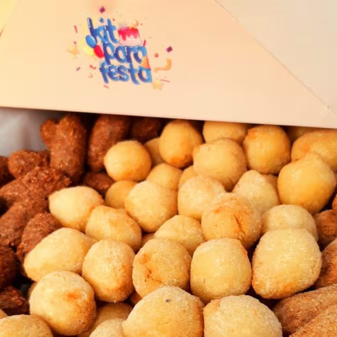 20 coxinha de frango, 20 bolinha de queijo, 20 kibe ,20 croquete, 20 bolinho de presunto e queijo (não pode modificar) e 1 refrigerante (Tubaína Xereta 2l).