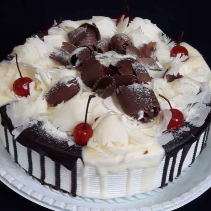 1 unidade (pão de ló branco, duas camadas de recheio, uma de um creme branco de leite Ninho e a outra com ganache de chocolate meio amargo. Divino !!! Produto delicado, não nos responsabilizamos pelo transporte, os motoboys são do ! Aproximadamente 10 à 12 pedaços.