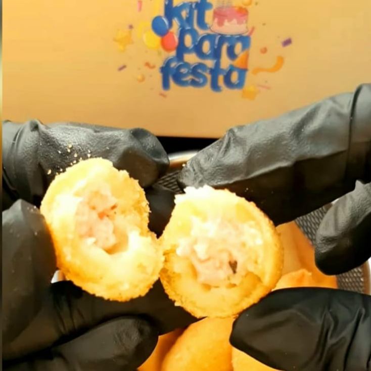 10 coxinha de frango, 10 bolinha de queijo, 10 kibe 10 croquete, 10 bolinho de presunto e queijo e 25 mini pasteis ( 15 carne e 10 queijo).não pode modificar.