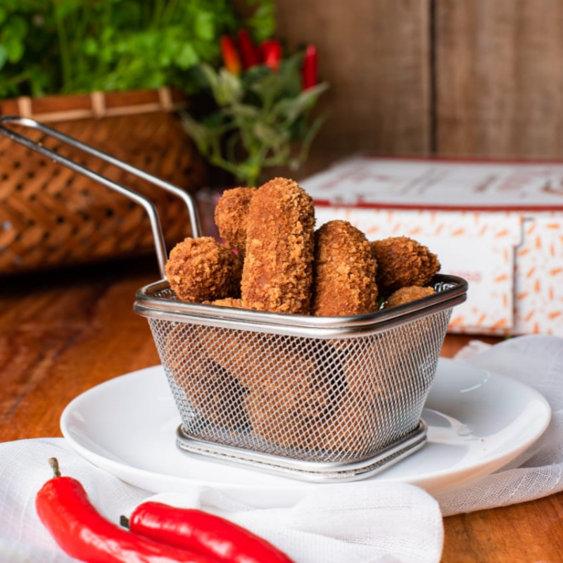 10 Coxinhas de frango, 10 Bolinhas de queijo, 10 croquetes, 10 Bolinhas de carne seca 10 Crespinhos de queijo