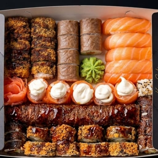 10 hot holl , 10 bolinha de salmão, 10 iscas de salmão empanado.